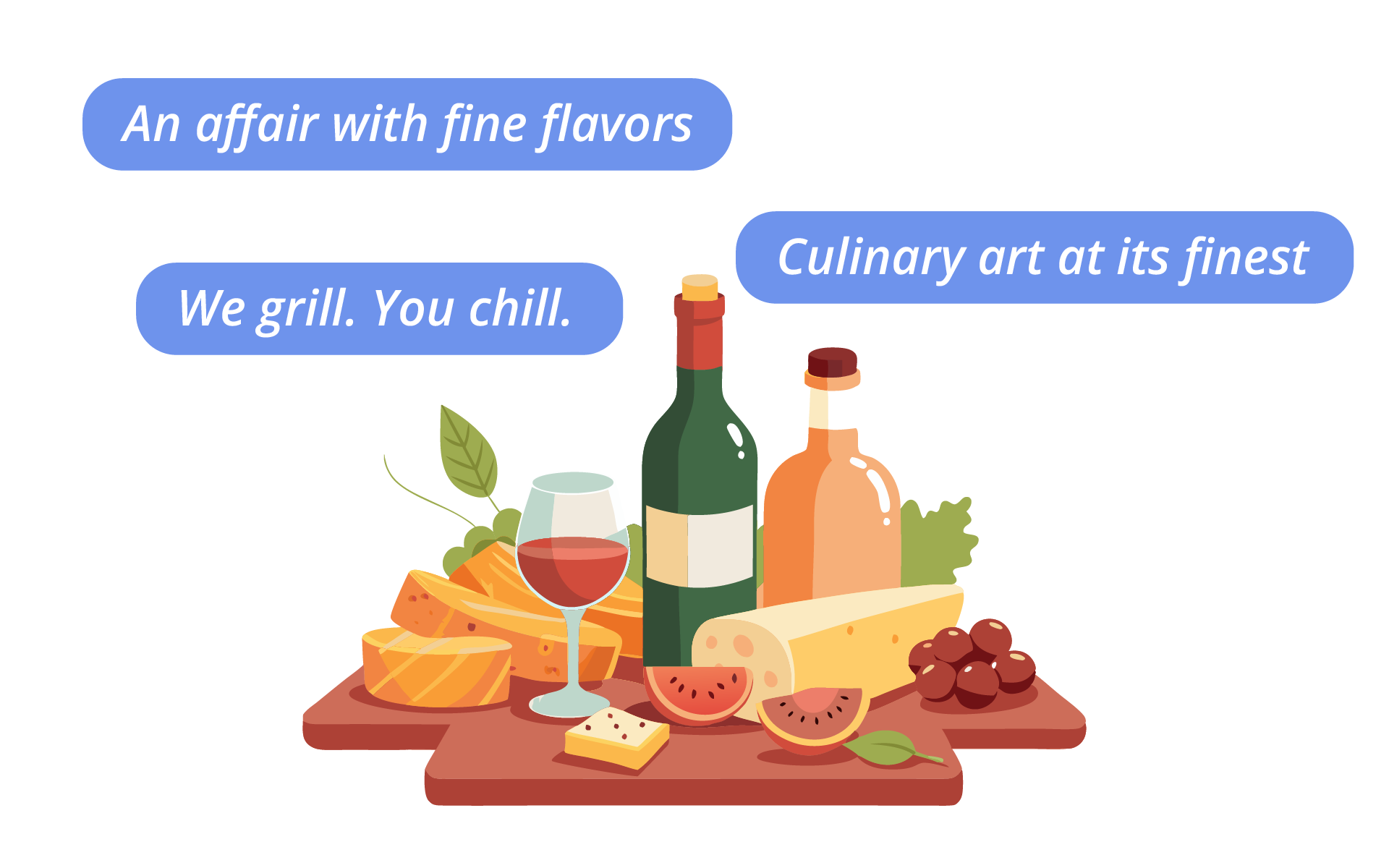 Think about your restaurant’s personality. Is it fun and casual, classy and elegant, or healthy and fresh? Your slogan should match your vibe.