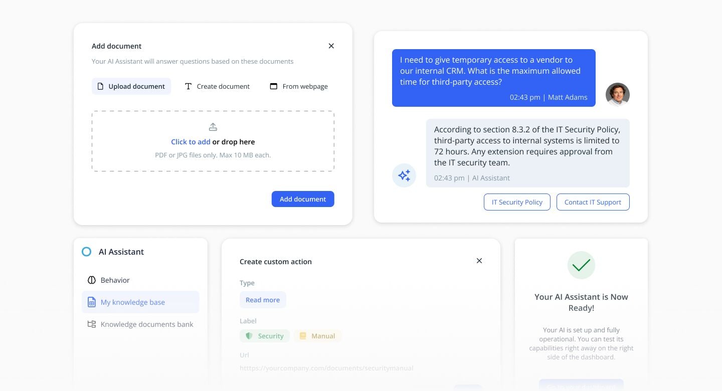 Gain immediate access to company policies, guidelines, and internal documents, streamlining decision-making and improving operational efficiency.