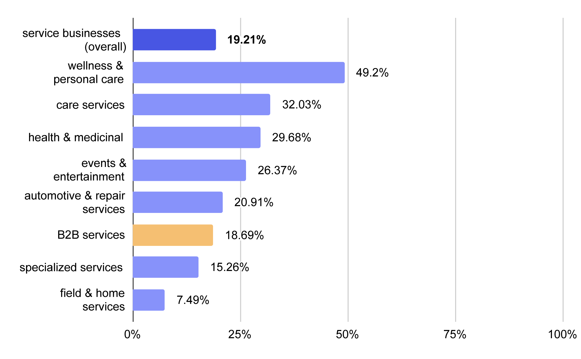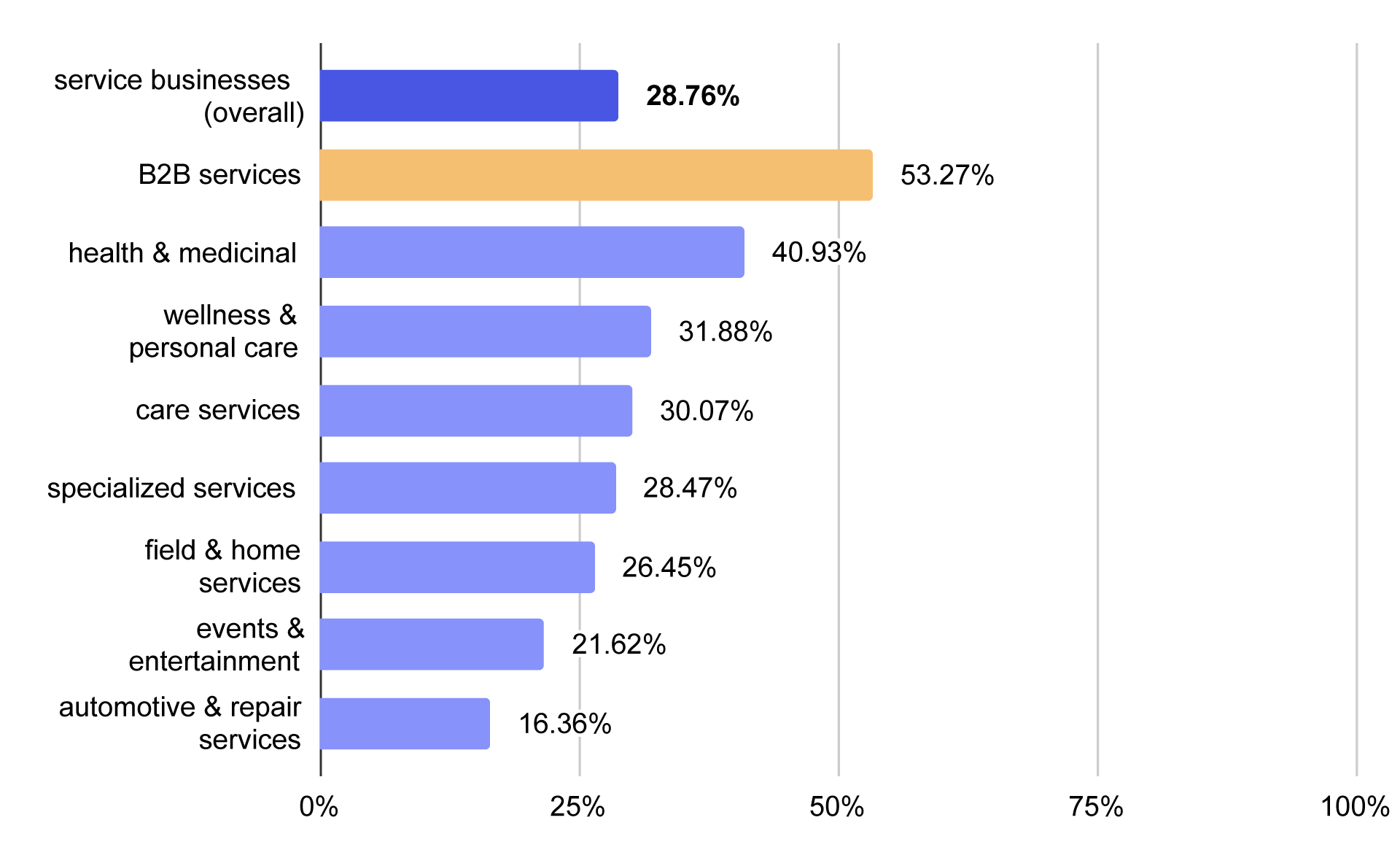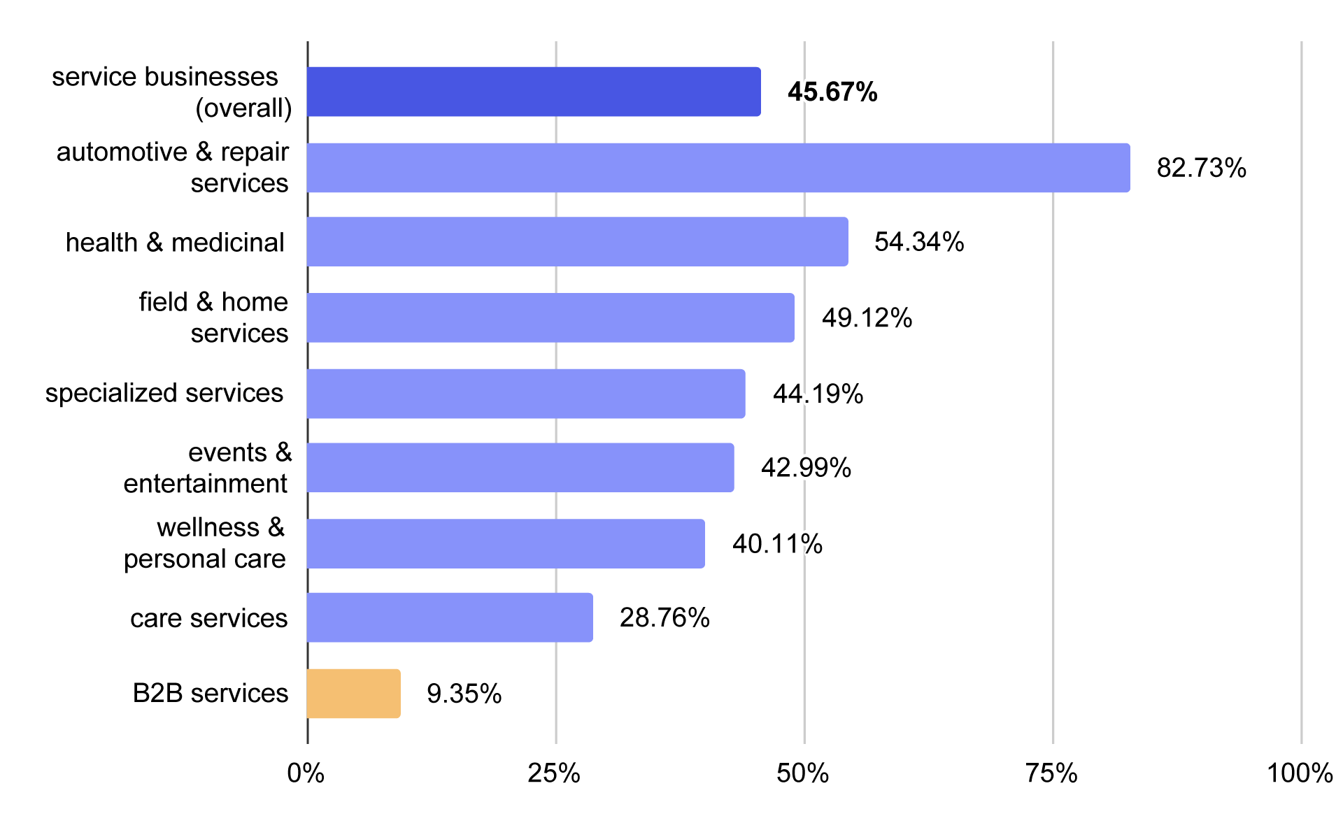 Percentage of B2B and service businesses overall with booking systems on their websites