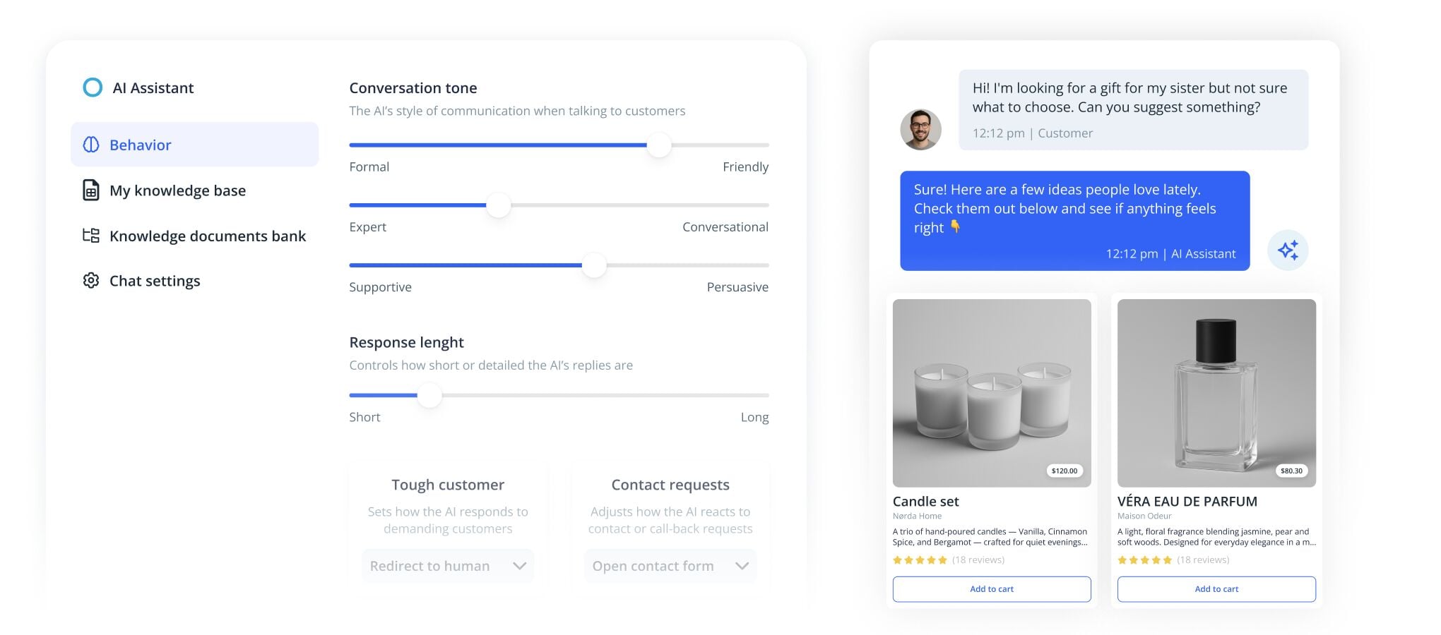 Customers receive helpful and natural responses that reflect your business, even when you're not online. Just set the tone, and let the chat take it from there.