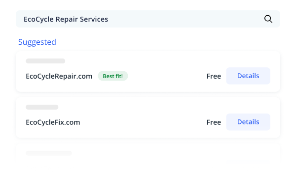 Our AI suggests ready-to-use domains based on your company name, industry, and location, helping you quickly find the perfect fit.