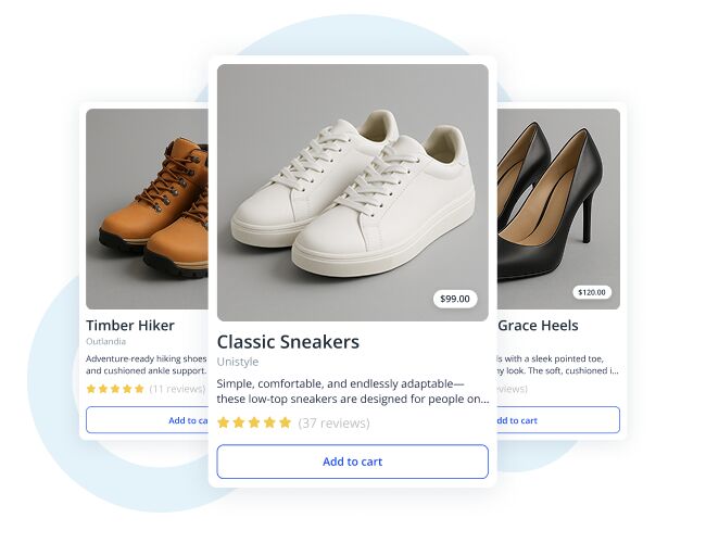Get your fully featured ecommerce site in just a few clicks with AI tools to help your business succeed.