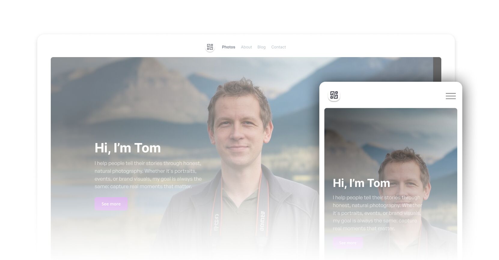 Build your website in seconds with our simple mobile app. It looks awesome right from the start, so all you need to do is pick the theme and layout that fit you best. You can change or create new content anytime with just a few taps.
