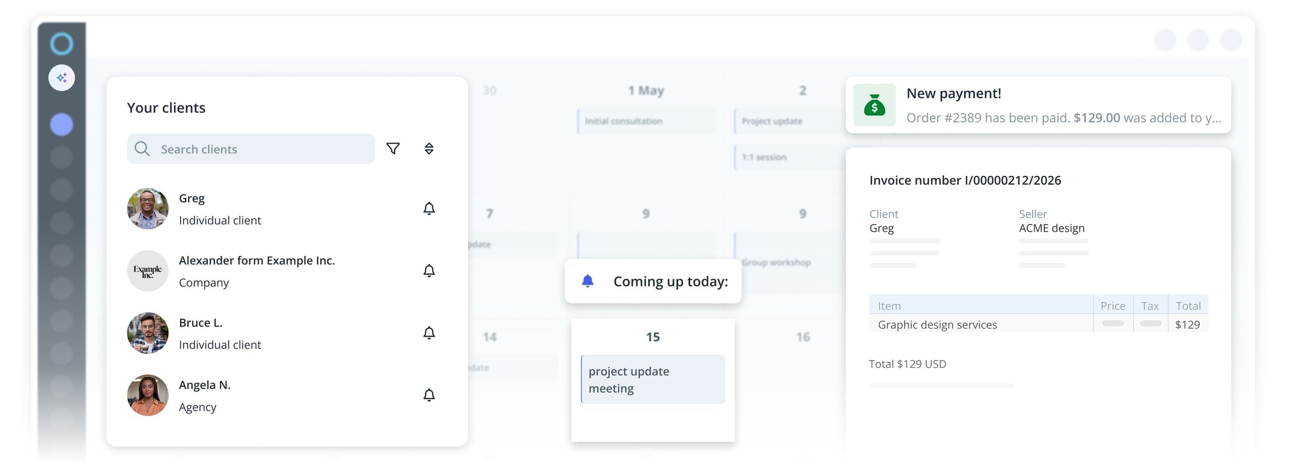 Let clients pay online with ease. Send payment links, automate invoicing, and keep all your transactions in one place. Track every payment and invoice in real time, so you always know where your business stands. With IKOL small biz management software, your finances stay organized and effortless — so you can focus on the work that really matters.