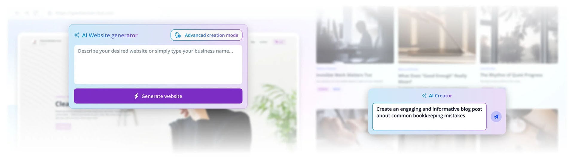 Create your business website in minutes with our AI-powered generator. No coding, no waiting — just type a prompt and get a ready-to-use site.