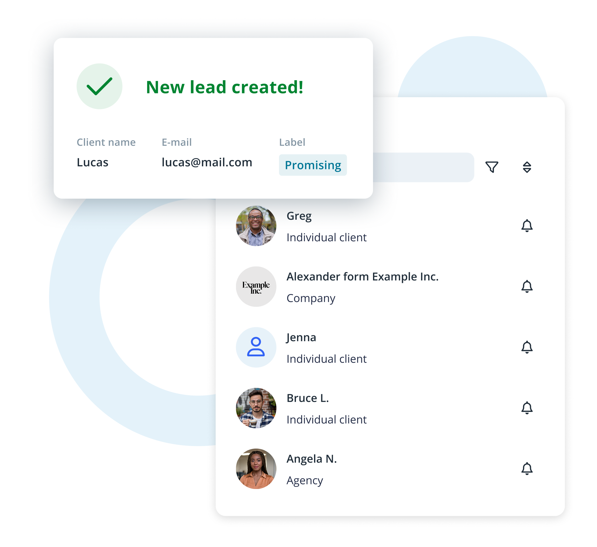 Manage your customer base with ease — track notes, labels, contact details, and full interaction history in one place. Organize your leads so you can prioritize the most promising opportunities.