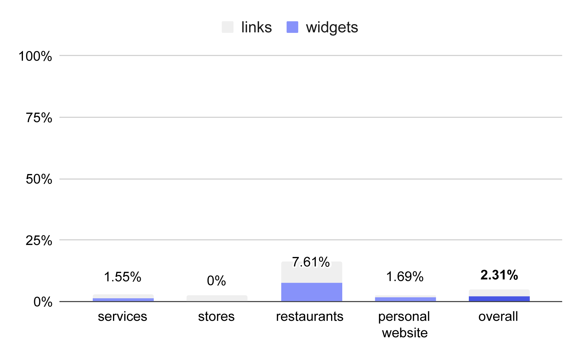 Percentage of business websites with on-site booking widgets